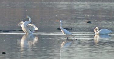Weiter Richtung Irschener Winkel ließen sich die ersten Reiher blicken, bevor man mühsam die vielen Entenarten aus der großer Schwimmvogelmenge herausfindet. Diesmal natürlich die Tafelente, aber auch die seltene Moorente und die schönen Spießenten.