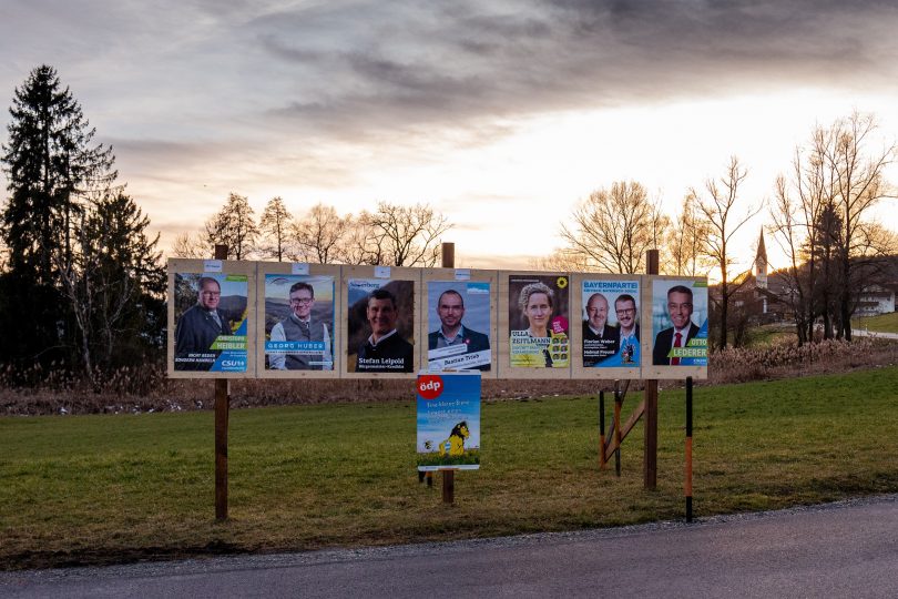 Die bevorstehenden Kommunalwahlen in Bayern sind bei durchwegs steigenden Bewerberzahlen ein echtes Beispiel für den Spruch “Die Qual der Wahl”. Wie das in den einzelnen Orten ausschaut und funktionieren kann, das zeigt dieses aktuelle Bild, das am Samerberg die amtliche Werbetafel mit dem Hauptort Törwang im Hintergrund zeigt.