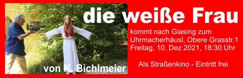 Das neueste Werk des Münchner Filmemachers Klaus Bichlmeier (ZeitReise Bayern) ist die Geschichte der WEISSEN FRAU. Gezeigt wird der Film als Straßenkino am Freitag, 10. Dezember beim Uhrmacherhäusl in der Oberen Grasstraße 1. Beginn ist um 18.30 Uhr, der Eintritt zum Straßenkino ist frei.