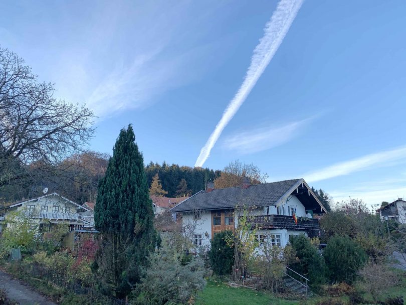 Lange waren sie soviel wie verschwunden seit dem ersten Corona-Lockdown, nun sind sie wieder zurück: die Kondensstreifen und Himmelszeichen des aktiven Luftverkehrs. Wie diese aktuellen Aufnahmen über Prien-Prutdorf zeigen, scheinen die “Hinterlassenschaften” sogar noch größer und breiter geworden zu sein als vorher.