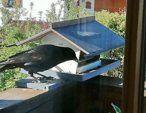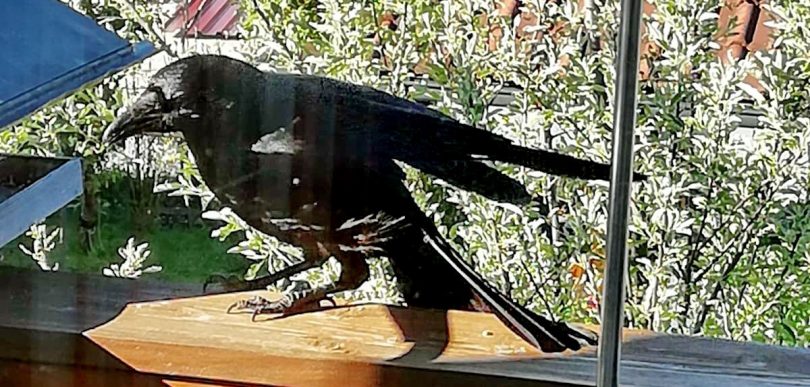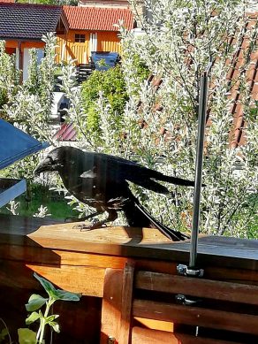 Einen diebischen Eindruck hinterläßt diese Krähe, die am Küchenfenster in Neukirchen am Simsee mit dem Foto-Apparat festgehalten wurde. Krähen sind ja bekannt dafür, dass sie nicht nur schön, sondern auch schlau und schnell sind.