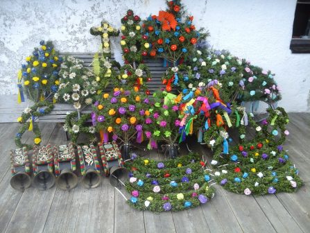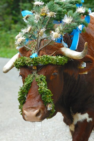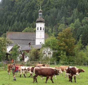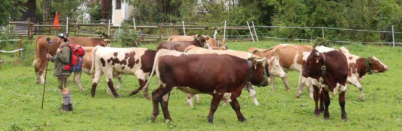 Die rund 50 prächtig geschmückten Tiere werden gegen 13.00 Uhr im Bergsteigerdorf Sachrang eintreffen und machen Zwischenstation auf der Wiese am Dorfplatz, bevor sie verladen werden und in ihre Heimbetriebe zurückkehren.