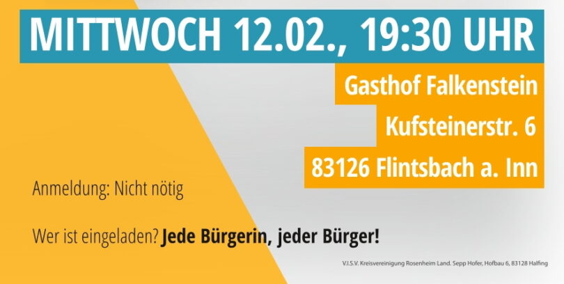 Ab 19.30 Uhr wird der oberbayerische Spitzenkandidat der FW, Bezirksrat und stellv. Landrat Sepp Hofer sprechen, anschließend berichtet der Landtagsabgeordnete Josef Lausch über den Planungsstand des Südzulaufs zum Brenner-Basistunnel. Die Bevölkerung ist im Anschluss zum Meinungsaustausch herzlich eingeladen, der Eintritt ist frei!