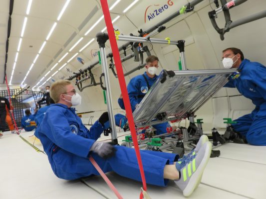 Mit all diesen Fragen beschäftigen sich die fünf Experimente des Braunschweiger DLR-Instituts für Faserverbundleichtbau und Adaptronik, die mit dem Parabelflug am 23. Juli 2021 von Paderborn aus gestartet sind. In 31 Parabeln befanden sich die Forschenden jeweils für 22 Sekunden in Schwerelosigkeit und konnten so die Entfaltungsmechanismen unter ähnlichen Bedingungen wie im Weltraum durchführen.