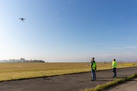 Nachdem das Feuer so erkannt wurde, erstellte der Operator der BoS-Drohne eine Flugverbotszone um das Feuer herum und lud diese Information auf einen zentralen Server der Firma FlyNex hoch. „Über diesen Server erfuhr die Bodenstation für unsere Drohnen von der Gefahrenzone“, erklärt Kuenz. „Das Gebiet wurde in die interne Datenbank eingepflegt, in der auch der lokale Flugverkehr von der DFS bereits eingespeist ist. So wurde unter anderem eine Konflikterkennung und -vermeidung mit den kontrollierten Drohnen ermöglicht.“ Zusätzlich wurde den drei bereits in der Luft befindlichen Drohnen die Gefahrenzone mitgeteilt. Sie erkannten eigenständig, ob sie sich nahe der Gefahrenzone befanden, hielten sofort ihre Position und warteten auf neue Anweisungen von der Bodenstation. Die Wissenschaftler und Wissenschaftlerinnen konnten dann die Drohnen um die Verbotszone herumführen. Die Versuche verliefen erfolgreich und vielversprechend“, freut sich Kuenz.