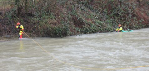 Der Fischereiverein für Kinder und Jugendliche Prien e.V. betreut seit Mitte Dezember letzten Jahres eine in der Prien schwimmende Brutbox mit etwa 5000 Seeforelleneiern. Nachdem die Fische vor einiger Zeit geschlüpft waren, sollten diese am kommenden Wochenende im Prienfluss ausgesetzt werden. Aufgrund der Niederschläge in der Nacht vom Montag auf Dienstag stieg der Wasserstand der Prien rasant an. Dabei wurde der schwimmende Behälter mit den Jungfischen von treibenden Baumstämmen aus der Verankerung gerissen und verfing sich am gegenüberliegenden unzugänglichen Ufer. Es bestand die Gefahr, dass die Box bei sinkendem Wasserpegel trockenfällt und die kleinen Fische verenden.