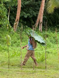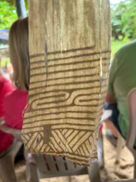 Wert: 50 getrocknete Blätter können beispielsweise den Wert von 5 Kinas (eine lokale Währung) haben. Herstellung von Bananenblattbündeln. Die Frauen der Vorfahren und auch heute noch bereiten die Nununiga vor, indem sie zunächst die Blätter der Wakaya-Banane pflücken und sie mit einem scharfen Werkzeug, dem Kaniku, auf einem Holzbrett – dem Kaidawaga – abschaben. Dabei wird nur die äußere Epidermisschicht entfernt, und zwei Drittel des Blattes werden anschließend mit dem Kidonatu-Werkzeug sorgfältig und präzise mit geometrischen Mustern verziert.