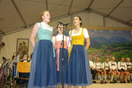 Auch die lange Tradition von Musik und Gesang in Reit im Winkl wurde an diesem Festabend ebenfalls eindrucksvoll dargestellt. Die Musikkapelle unter der Leitung von Sebastian Krause begleitete die Trachtler exakt bei ihren Auftritten und gefiel mit schönen Blasmusikweisen. Frisch und unbekümmert spielte mit Ziach, Hackbrett, Gitarre und Kontrabass die Wetterkreuzmusi auf. Althergebrachte Volkslieder sangen mit geübten Stimmen der Frauendreigesang Dreifarbig und der Männergesangverein Reit im Winkl.