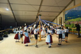 Dass die Koasawinkla zuversichtlich nach vorne schauen können, bewiesen die beherzten Auftritte der Kinder- und der Jugendgruppe mit schneidigen Schuhplattlern, dem Bandltanz und dem Laubentanz. Gemeinsam traten die Historischen Gruppen vom Festverein und vom Patenverein „d‘ Achentaler“ Unterwössen auf und zeigten anmutig alte Chiemgauer Volkstänze wie Woidjaga oder Kuckuckspolka.