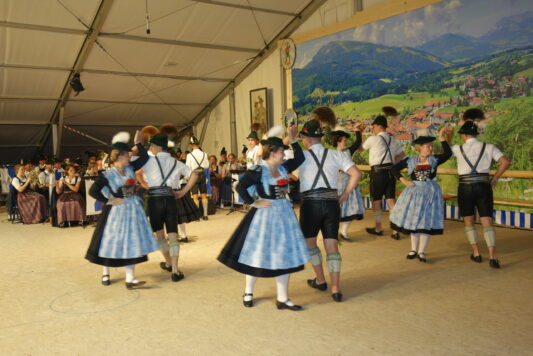 Die Aktive Gruppe des Festvereins gefiel mit Schuhplattlern und harmonisch dargebrachten Trachtentänzen wie demBandltanz oder Kronentanz – gezeigt wurde auch das geschichtsträchtige Karenspiel.