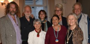 v.li.n.re. hinten: Liam O’Maonlai (Irland), Claus Biegert (München), Susanna Vötter-Dankl (Leopold Kohr®-Akademie, Salzburg), Dr. Silvia Bengesser-Scharinger (Literaturarchiv Salzburg), Alfred Winter (Leopold Kohr®-Akademie, Salzburg). Vorne: Tjan Zaotschnaja (Itelmenin aus der Kamtschatka, Sibirien), Anna Rondon (Navajo Nation) und Jutta Wiesenthal (München). Foto: Manfred Siebinger