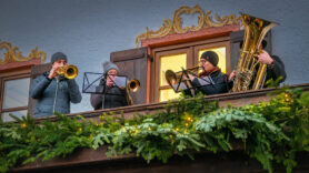 Die festliche Atmosphäre bekam ihren Klang durch eine Samerberger Bläsergruppe, die vom Balkon des Rathauses aus mit Adventsweisen für die passende Begleitung sorgte.