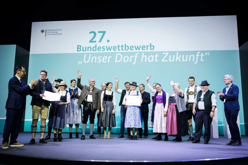 Guido Romor, der als Sachgebietsleiter des ALE Oberbayern viele Jahre die Entwicklung Huglfings zu einem schmucken, lebenswerten Ort mitverfolgte, nennt die Beharrlichkeit der Dorfgemeinschaft, stetig etwas zu verbessern und das ausgeprägte, konstruktive Miteinander als Garanten für das erfolgreiche Abschneiden Huglfings. Mit der Auszeichnung haben die beteiligten Bürgerinnen und Bürger eine verdiente Anerkennung für ihr jahrelanges Engagement erhalten, so der Baudirektor. Wie sehr sich die Huglfingerinnen und Huglfinger über die Anerkennung freuten, konnte Guido Romor als Gast persönlich miterleben, als er die 80-köpfige Delegation samt Blaskapelle aus dem oberbayerischen Ort nach Berlin begleitete. Dort fand am 26. Januar 2024 während der Internationalen Grünen Woche in der Berliner Kongressarena CityCube mit rund 2500 Gästen die feierliche Siegerehrung satt. Bundeslandwirtschaftsminister Cem Özdemir überreichte die Goldmedaille und gratulierte zu der Auszeichnung, die auch die Hugelfinger Delegation als etwas Besonderes erlebte: „Diese Veranstaltung war einmalig und an Euphorie, Stimmung, Lebensfreude und auch an Professionalität nicht zu überbieten“, so Markus Huber. „Diesen Abend wird keiner der 22 teilnehmenden Dörfer und auch keiner der 80 teilnehmenden Huglfingerinnen und Huglfingern je vergessen.“