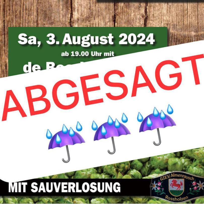 Das für heute Abend geplante Dorffest in Roßholzen musste aufgrund der Wetterlage leider abgesagt werden.