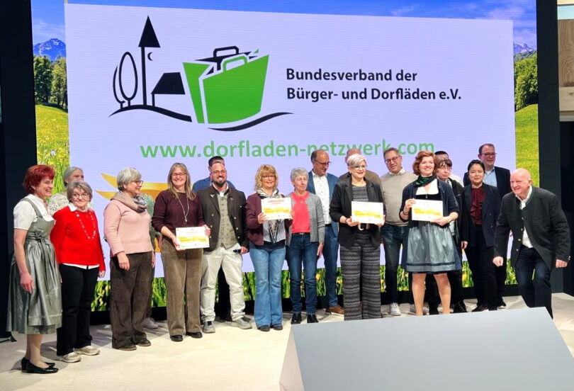 Vier Preisträger gab es auf der Grünen Woche 2026 in Berlin für Gold-Dorfläden. Die Auszeichnung erfolgte vom Bundesverband der Bürger- und Dorfläden e.V. in der Halle des Bundesministeriums. Die Preisträger in verschiedenen Kategorien kommen aus Bayern, Baden-Württemberg und Hessen. Nach der Auszeichnung gab es einen kleinen Festzug zur Bayernhalle mit musikalischer Begleitung der Kapelle „Bloß Blech“ aus der Oberpfalz zur Bayernhalle.