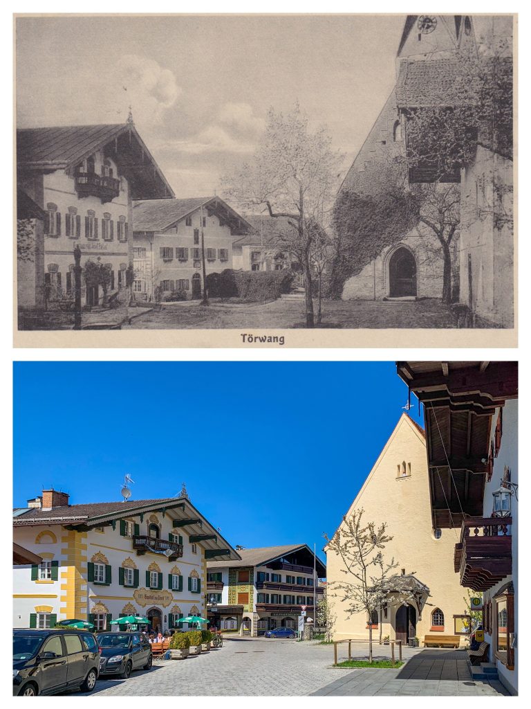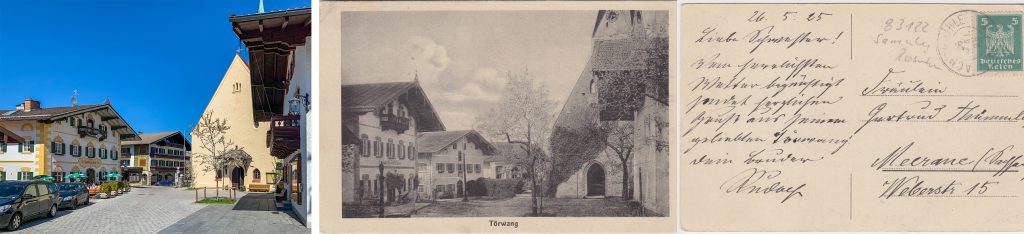 Ganze 94 Jahre ist es her, dass eine bei einem Sammler aufgetauchte historische Postkarte von Törwang am Samerberg vom Postamt in Achenmühle (mit Stempel vom 26. Mai 1925) nach Meerane in Sachsen abgesandt worden ist. Im Vergleich dazu zeigt sich mit einer aktuellen Aufnahme der Törwanger Dorfplatz wie er sich seither verändert, bzw. nicht verändert hat.