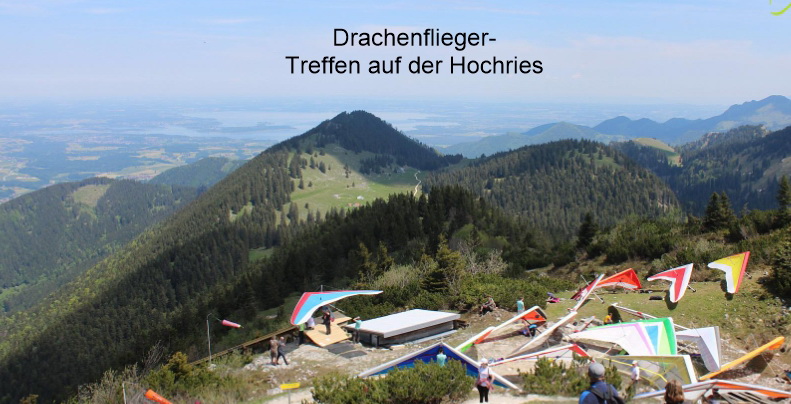 Wetter, Wind und Thermik waren wohl ideal als sich die Drachenflieger wieder einmal in größerer Anzahl auf die Hochries machten, um anschließend ins Rosenheimer Land hinunterzufliegen. Das Treffen der Drachenflieger hat diese Aufnahme festgehalten.