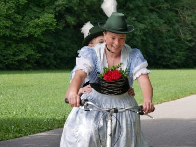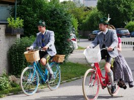 Wie gut es funktioniert, wenn Alt und Jung gemeinsam feiern verdeutlicht der gedrehte Biergarten-Besuch. Alle sitzen gemütlich zusammen, tanzen und genießen die schönen Stunden. So wird der lebendig gebliebene Generationenvertrag bildhaft gemacht. Über 100 Mitglieder aus den Vereinen waren gekommen, um an diesem Gemeinschaftswerk mitzuwirken. Wie farbenfroh und facettenreich die Trachten im Gauverband I sind verkörpern ihre Träger. Sie kamen gekleidet in ihren Heimattrachten aus Berchtesgaden, Vagen, Westerham und Götting, aus Aßling, Chieming, Siegsdorf und Bergen. Auch das Dirndlgwand für die Freizeit, für den Mann die Lederhose, Hut und das passende Schuhwerk ohne Kitsch wird zu sehen geben.