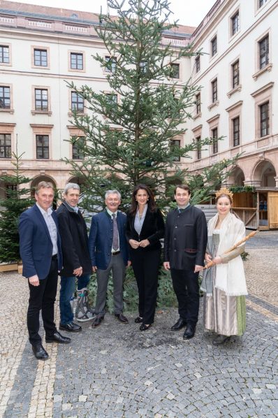 Drei prächtige Tannen aus dem Dachauer Land, dem Rupertiwinkel und dem Berchtesgadener Land werden in der Vorweihnachtszeit vor dem Amtszimmer von Forstministerin Michaela Kaniber sowie im Eingangsbereich und im Schmuckhof ihres Ministeriums in München stehen. Die Delegationen der drei Spender – Stadt Tittmoning und Waldbesitzervereinigung Laufen/BGL, Christbaumanbauer und Staatsforsten – kamen eigens nach München, um der Ministerin die weihnachtlichen Botschafter offiziell zu übergeben: Tittmonings Bürgermeister Konrad Schupfner (Lkr. Traunstein) und Franz Käsmeier von der Waldbesitzervereinigung Laufen-Berchtesgaden waren dabei, ebenso Claus Meier vom Christbaumstadl Indersdorf (Lkr. Dachau) und der Vorsitzende des Verbands Bayerischer Christbaumanbauer Thomas Emslander, aber auch Waldkönigin Johanna Gierl sowie der Präsident des Bayerischen Waldbesitzerverbands Josef Ziegler und der Vorstandsvorsitzende der Bayerischen Staatsforsten, Martin Neumeyer. Die Ministerin nutzte die Gelegenheit, um sich erneut für heimische Christbäume stark zu machen. „Ein Christbaum aus Bayern stärkt die regionale Wirtschaft, schafft Arbeitsplätze und hilft, Ferntransporte quer durch Europa zu vermeiden“, so die Ministerin.