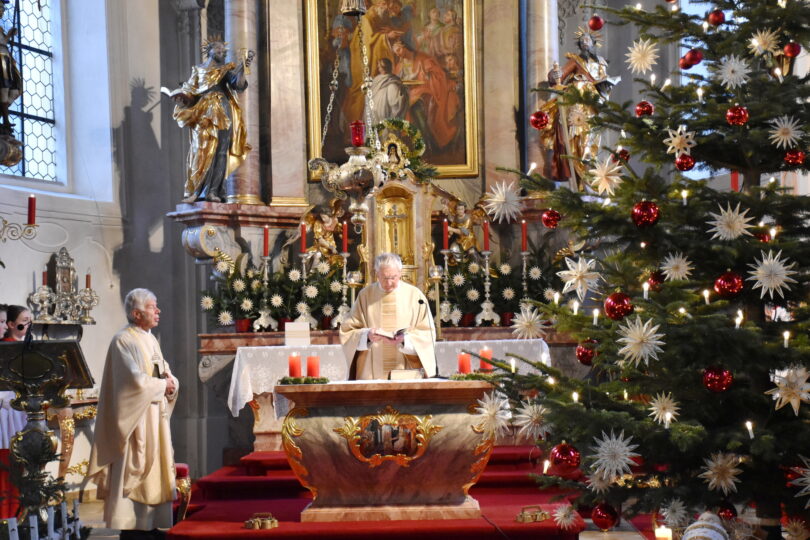 Einen anderen Weg nehmen sah der Pfarrer als Möglichkeit für die heutige Zeit, um die Heilbotschaft von Jesus weiter zu tragen, besonders auch zu den Menschen in Not auf der ganzen Welt, aber auch im eigenen Land. So wie auch die Sternsinger in den letzten Tagen von Haus zu Haus gezogen sind, um mit dem Einsammeln der Spenden die Not der Kinder weltweit zu lindern. Als finale Aufgabe stellte der Pfarrer den Gläubigen die Frage: „Mache auch ich mich auf, einen anderen Weg zu gehen?“. Unterstützt bei der Messe wurde der Ruhestandspfarrer von Kurat Alfons Lay, der auch die Segnung des Dreikönigswassers und der anwesenden Gläubigen durchführte.