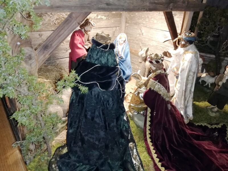 Bericht und Foto: Sybilla Wunderlich – Die Krippe mit den drei Weisen aus dem Morgenland in der St. Remigiuskirche – Ruhestandspfarrer Josef Kreuzpointer und Kurat Alfons Lay (links) bei der Messe