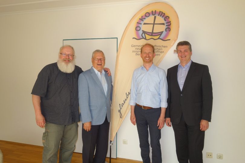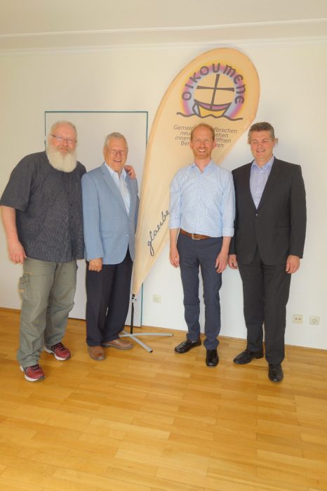 Fotos: Hötzelsperger – Gut lachen haben aufgrund guter Übereinstimmungen von links: Pfarrer Karl-Friedrich Wackerbarth, Zweiter Bürgermeister Jürgen Schuster, Pfarrer Klaus Hofstetter und Gemeindevorsteher Andreas Sargant.