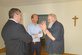 Bei einer gemeinsamen Abstimmung im Pfarrhof der Katholischen Pfarrei „Maria Himmelfahrt“ verständigten sich gastgebender Pfarrer Klaus Hofstetter, Pfarrer Karl-Friedrich Wackerbarth von der Evangelischen Kirchengemeinde und Vorstand Andreas Sargant von der Neuapostolischen Gemeinde in Prien zusammen mit Priens Zweitem Bürgermeister Hans-Jürgen Schuster auf erste Details. „Glaube soll sich nicht hinter Kirchenmauern verschanzen“ – so der Tenor als Ideengeber für die vier gewählten Unter-Mottos „Innere Räume öffnen“, Gemeinsam aufbrechen“, „Berge versetzen“ und „Neue Wege gehen“. Weiters waren sich die Geistlichen und 2. Bürgermeister Schuster einig, dass die Ökumene in Prien bereits eine Selbstveständlichkeit ist, bereits seit drei Jahren sind die Verantwortlichen von Katholischer, Evangelischer und Neuapostolischer Kirche im Sinne der übergeordneten Kirchenstellen gemeinsam unterwegs. Als Symbol für die Festlichkeiten wurde ein Kreuz mit drei Balken gewählt und gestaltet. Das mannshohe Kreuz wird derzeit von der Priener Zimmerei Stocker erstellt, so dass es bei den Feierlichkeiten am 9. Juli sichtbar werden wird. Dieses Kreuz als Symbol dafür, dass die drei Kirchen durch Christus vereint sein wollen, soll auch verschiedene Botschaften der Versöhnung aussenden, unter anderem diese: „Was siehst Du den Splitter in den Augen des Anderen, aber Deinen eigenen Balken siehst Du nicht!“. „Das ist gut für Prien“ – mit dieser Aussage dankte Zweiter Bürgermeister Hans-Jürgen Schuster den drei Kirchen für ihre nicht immer einfachen ökumenischen Anstrengungen. Mit vielfacher Unterstützung der jeweiligen kirchlichen Gremien sowie der Priener Marketing GmbH, der Gemeinde Prien, der Volksbank Raiffeisenbank Prien und der Sparkasse Rosenheim-Bad Aibling wird es am Sonntag, 9. Juli zum Ökumenischen Gottesdienst im Fußgängerbereich ab 10.30 Uhr mit der Evangelischen Kirchenband, dem Katholischen Kinderchor und dem Neuapostolischen Frauenchor kommen. Ab Mittag wird dann ein großes Fest im Freien mit Musik, Informationsständen, Trachtler-Auftritten und Gesprächsrunden geben. Sollte das Wetter eine Freiveranstaltung nicht zulassen, wird das Fest der Begegnung im König-Ludwig-Saal sein. Den Abschluss bildet ab 17 Uhr ein Segenskreis. Angeregt vom Ökumenischen Arbeitskreis Rimsting wird es am Bundestagswahl-Sonntag, 24. September ab 14 Uhr zu einer rund vierstündigen Ökumenischen Seewallfahrt auf dem Chiemsee kommen. Daran beteiligen sich unter anderem Erzpriester Apostolos Malamoussis von der griechisch-orthodoxen Gemeinde München, Pastoralreferentin Edith Heindl und Pfarrer Konrad Kronast vom Katholischen Pfarrverband Westliches Chiemseeufer, Frau Äbtissin Johanna Mayer, OSB von der Benediktinerabtei Frauenwörth, Bezirksevangelist Andras Sargant von der Neuapostolischen Gemeinde Prien, Pfarrerin Hanna von Schroeders von der Evangelisch-Lutherischen Gemeinde Aschau-Bernau und Pfarrer i. R. Dr. Hermann Probst von der Evangelisch-Lutherischen Gemeinde Prien. Für den 30. September wird noch ein umfangreicher Kinder-Bibeltag mit Besuch aller drei Priener Kirchen vorbereitet.
