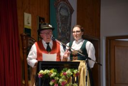 „Wie hat es eigentlich angefangen?“, war die Frage von Anna Möckl an ihren Opa Adolf Möckl. Zusammen haben die beiden die Geschichte und die Arbeit der Freudenseer vorgestellt und den Gästen nähergebracht. Mit vielen Bildern aus 75 Jahren Vereinsgeschichte machten sie die Arbeit des Trachtenvereins und seiner Gruppen greifbar. Und so mancher musste auch eingestehen, dass es ihm nicht bewusst war, was die Freudenseer alles machen. Alois Haydn, 2. Gauvorstand, meinte danach:“ Da kann ich nur eines sagen: Hut ab!“