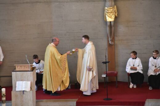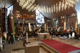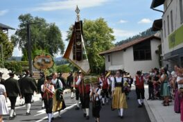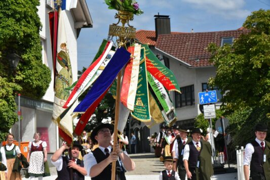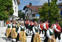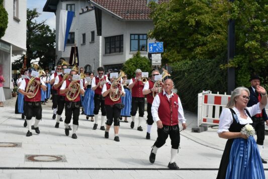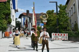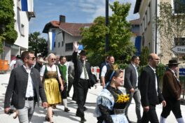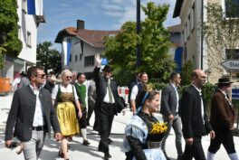 Der Höhepunkt war jedoch der Gaufestsonntag, der mit dem Festgottesdienst in der Pfarrkirche startete. Trachtenpfarrer Josef Tiefenböck stellte in seiner Predigt heraus, dass Brauchtum und Tradition noch immer die tragenden Säulen unter dem bayerischen Himmel sind. Und so ließ er es sich nicht nehmen mit Stadtpfarrer Alexander Aulinger mit einer „Hoibe“ „auf eine Gott gesegnete Zukunft der Trachtlerinnen und Trachtler“ anzustoßen.