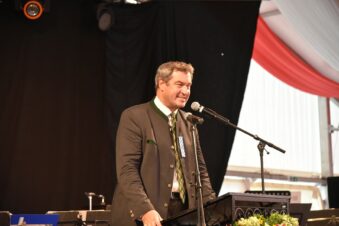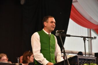 Mit über 60 Vereinen und vielen Ehrengästen – allen voran Bayerns Ministerpräsident Dr. Markus Söder und der Landesvorsitzende Günter Frey– setzte sich nach dem Gottesdienst der Festzug zur Hauzenberger Dult in Bewegung. Für viele war der Gegenzug ein Highlight des Gaufestzuges. In seinem Grußwort sagte Söder anerkennend: „Ihr macht’s was her, ihr steht für Heimat!“ Mit der Fahnenparade fand der offizielle Teil des Gautrachtenfestes im Festzelt auf der Hauzenberger Dult einen krönenden Abschluss.