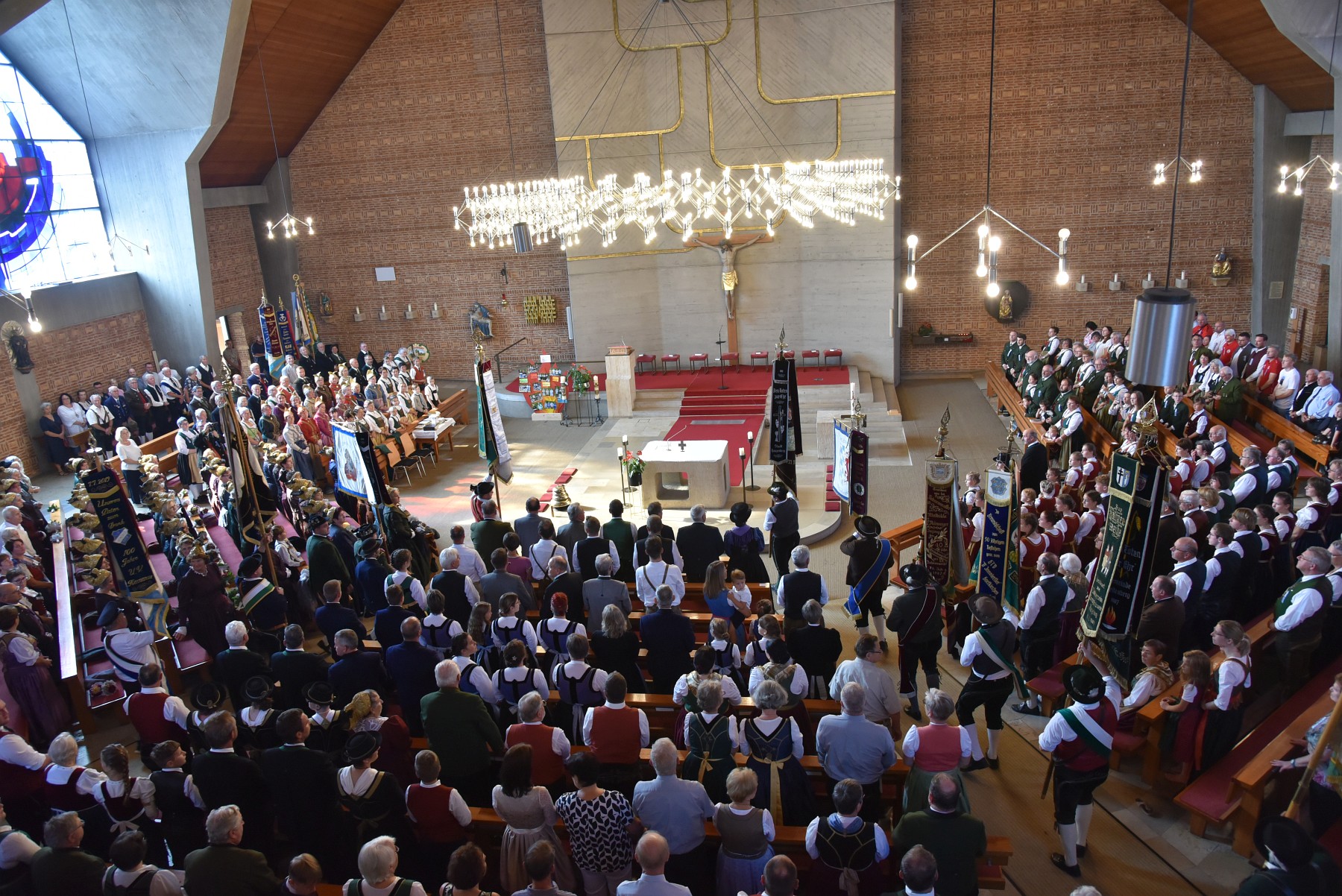 Es war ein großartiger Blick von oben in die Hauzenberger Kirche mit den vielen Trachtlerinnen und Trachtlern und Goldhaubenfrauen, beim Festgottesdienst.
