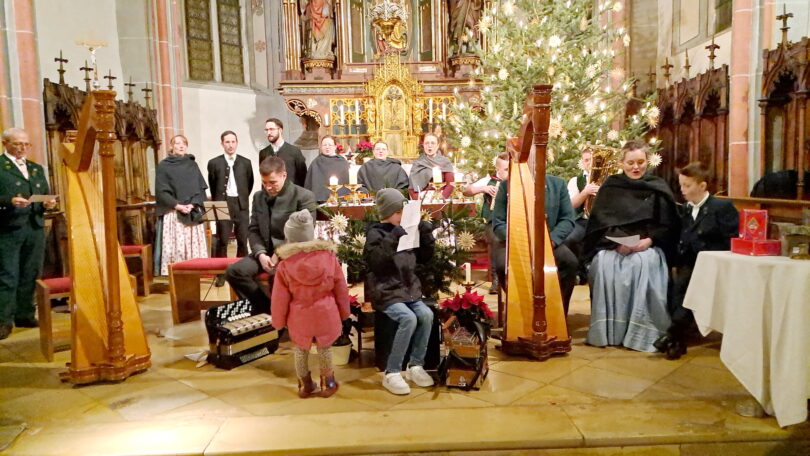 Neben den, weit über die Gemeindegrenzen von Obing hinaus bekannten Gruppen, wie der Zacherlmusi mit Christian und Ludwig Zacherl, den Albertaicher Dirndl, dem Alztaler Dreigsang von Anton Esterbauer, Stefan Schulz und Magdalena Mauerer mit der Gitarre und Irmi und Christoph Irgmeier, waren es die Kinder vom Trachtenverein, die unter der Leitung von Christoph Irgmeier und ihren fröhlichen Hirtenliedern die besinnliche Stunde abgerundet haben. Instrumental hat Marlene Winkler die Hirtenkinder mit der Geige und ihre Mama Magdalena mit der Harfe begleitet. Die alpenländischen Lieder und Musikstücke, wie die staden Weisen von Irmi und Christoph Irgmeier haben die Zuhörer in eine friedliche und ruhige Zeit abtauchen lassen und ihnen einen wunderschönen musikalischen Abend in der staden Zeit zum Jahreswechsel erfreut.