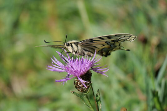 Im Bergwald findet man an schattigen Stellen noch die letzten Orchideen, wie die nach Vanille duftende Rotbraune Ständelwurz, bevor bald die Herbstflora Einzug hält. Eine besondere Freude bereitet mir ein Mohrenfalter, der sich auf meine Hand setzt, fotografieren lässt und dann noch ein Stück des Weges mitgenommen wird. Die Begegnung mit der reichen Natur macht einfach Freude.Bei der wunderschönen Brandelberg Alm angekommen, erfreute ich mich an den vielen Schmetterlingen auf der Wiese. Vom kleinen zarten Silbergrünen Bläuling bis zum großen Schwalbenschwanz. Auch ohne Artenkenntnis erkennt man einfach an der Vielzahl der verschiedenen Schmetterlinge, wie eine normale heimische Artenvielfalt aussieht.