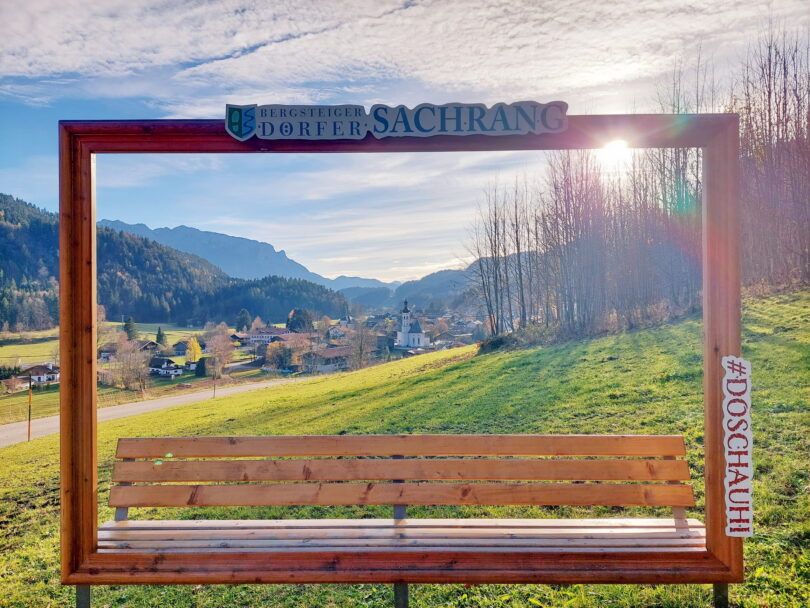 Wenn sich in diesen Spätherbst-Tagen die Wanderer im Priental auf den Weg machen, dann treffen sie unter anderem auf einen riesigen Bilderrahmen mit dem Titel “Do schau hi”. Beim Blick durch den Rahmen zeigt sich das Bergsteigerdorf Sachrang von seiner schönsten Sonnenseite.