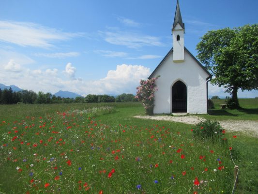 Freunde sind zu Besuch in Prien. Sie haben ihre E-Bikes dabei und wir sind schon einige km geradelt, auch den Chiemsee haben wir schon umrundet. Heute wollen sie von Prien zum Simssee radeln. Ich überlege mir eine Rundtour mit einem Abstecher über den Söllhubener Kapellenweg einen meiner Lieblingsorte im Chiemgau.