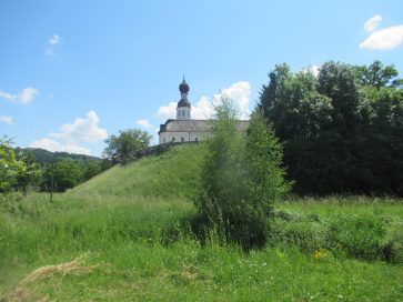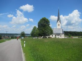 Wir machen noch Stopps bei der Schwemmreiter Kapelle und der Kapelle „Zur Schmerzhaften Muttergottes” und radeln dann über Söllhuben und Thalham hinunter nach Neukirchen, wo wir die sehenswerte Wallfahrtskirche Maria Stern besichtigen.