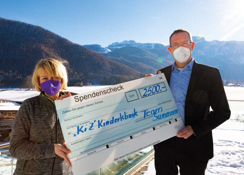 „Bitte aufrunden“ hieß es bei Edeka Summerer in Rimsting in der Vorweihnachtszeit. „aufrunden für die Kinder im KIZ (Kind im Zentrum Chiemgau) Aschau“. Viele Käufer aus Rimsting und Umgebung machten bei dieser Aktion mit. So rundeten die Kunden die Cent-Beträge bei ihren Einkäufen an der Kasse auf das nächste Zehnerl auf und nach dem Abschluss der Aktion machte das Team Edeka Summerer den Betrag von 2.500 Euro voll. Die Inhaberin des Edeka-Marktes Heidi Summerer brachte den Scheck nach Aschau und übergab ihn dem Leiter des Klinikmanagements KIZ Stefan Schmitt.