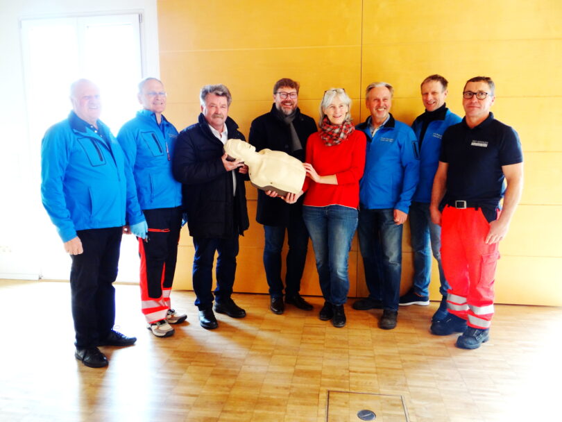 Grund dieser Schulung waren unsere Spenden: Für die First Responder eine Reanimationspuppe und für die Gemeinde Eggstätt einen Defibrillator. Ebenso wurde von Leader Plus, noch eine zusätzliche Puppe gespendet. In der Schulung wurde uns von Christian Glaser alles wichtige zur Reanimation erklärt und vorgeführt. Dann ging es in drei Gruppen in die praktische Umsetzung. Stefan Fronhöfer wies uns die stabile Seitenlage ein, Christian Glaser und Andreas Widl übten mit uns an der Puppe den Ernstfall und ließen uns reanimieren und den Defibrillator einsetzen. Herr Glaser bat uns noch die App:. SOS EU Alp auf das Handy zu laden. Über diese App kann man in Deutschland, Österreich und in der Schweiz einen Notruf absetzen, auch in den Bergen und es werden automatisch die Koordinaten des Standorts übermittelt und schnelle Hilfe eingeleitet.