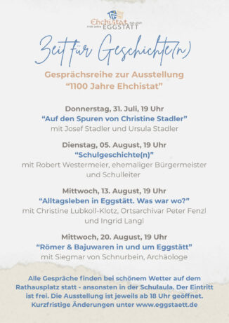 Mehr Informationen zu diesem und den weiteren Gesprächsabenden gibt es auf der Homepage der Gemeinde unter www.eggstaett.de/1100-jahre-ehchistat.