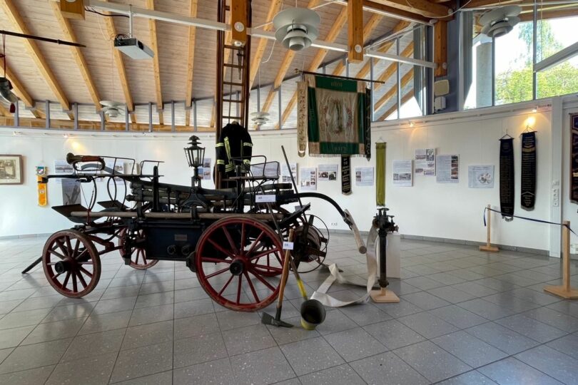 Historische Spritze für Festsonntag benötigt. Vom 22. bis 26. Juni bleibt die Ausstellung „250 Jahre Tracht & Tradition“ im Eggstätter Haus des Gastes geschlossen. Grund ist, dass ein Herzstück der Ausstellung, die historische Feuerwehrspritze aus dem Jahr 1903, am Festzug der Freiwilligen Feuerwehr Eggstätt am Sonntag, 25. Juni teilnimmt.