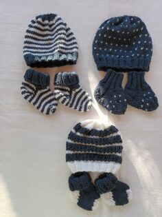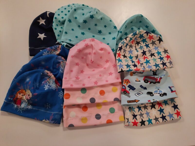 Nach Rücksprache in der Eggstätter Nähgruppe waren mehrere Damen mit Feuereifer am Stricken. Innerhalb von nur 4 Wochen wurde die beeindruckende Anzahl von 231 Babymützen sowie 22 Paar Socken gesammelt. Zusätzlich werden während gemeinsamer Nähtage nun leichte Sommermützchen genäht. Zu jeder Mütze gibt es ein gebasteltes “Füßchen”, als ein herzliches “Willkommen” der Frauenbewegung für das Baby.
