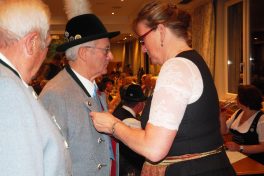 Ganz oben darauf stand Peter Bodner. Der 94-Jährige ist den Panger Trachtlern seit 75 Jahren treu und trat gleich nach dem zweiten Weltkrieg bei. Heute im österreichischen Niederndorf/Tirol zu Hause, ließ er sich an diesem Abend extra von seinem Sohn nach Rosenheim fahren, um die Ehrung bei guter Laune und unter Applaus im voll besetzten Saal entgegen zu nehmen. Im Beisein der Vorstände weiterer Ortsvereine aus dem südlichen Stadtgebiet, von Ehrenvorstand Andreas Gartner sowie vom stellvertretenden Vorsitzenden des Inngau-Trachtenverbands, Markus Kronberger, genoss Bodner sichtlich die Unterhaltung durch die Plattlergruppen. Für die passende Musik sorgte die Wasner Musi unter Leitung von Hans Rutz.