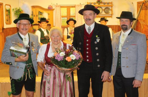 Der Gebietsvertreter überreichte Therese Empl den Gautaler für 70-jährige aktive Mitgliedschaft. Resi Empl war von 1956 bis 1961 Dirndlvertreterin und auch nach dem Wegzug in Folge ihrer Heirat blieb sie aktives Mitglied des Trachtenvereins und nahm mit ihrer Familie regelmäßig an den Veranstaltungen und Festbesuchen des Vereins teil.