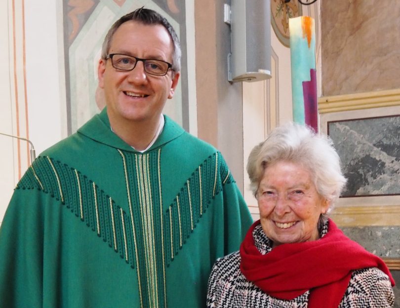 Für ihren jahrzehntelangen Dienst als Lektorin und Kommunionhelferin hat Domkapitular Dekan Daniel Reichel jetzt Gabriele Mayer mit einer Urkunde ausgezeichnet. Der Pfarrer der Stadtteilkirche-Am Wasen sowie der Pfarrverbände Bad Endorf und Westliches Chiemseeufer bezeichnete sie als Vorbild für die Kirchengemeinden. Beim jüngsten Pfarrgottesdienst in der Pfarrkirche Mariä Himmelfahrt im Rosenheimer Stadtteil Pang verabschiedete der Geistliche die Rosenheimerin in den wohlverdienten “Ehrenamtsruhestand” und überreichte zudem einen Präsentkorb.