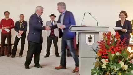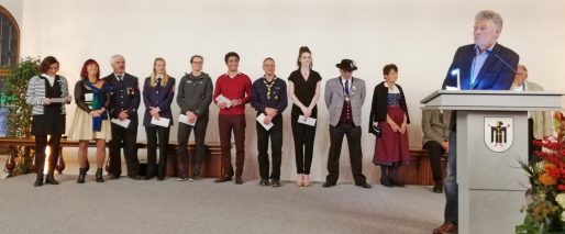 Die Einführung der Ehrenamtskarte für die Landeshauptstadt München war schon lange ein Anliegen für den Bayerischen Trachtenverband. Dessen Landesschriftführerin Hildegard Hoffmann und Hans Menzinger als langjähriger Vorsitzender vom Sachgebiet Öffentlichkeitsarbeit hatten sich immer wieder an die Stadt gewandt, um die bayernweit verbreitete Ehrenamtskarte für Ehrenamtliche auch in München einzuführen. Nun war es soweit. Unter den 300 geladenen Ehrenamtlichen, die Oberbürgermeister Dieter Reiter in den Alten Rathaussaal einlud und denen er für ihr nimmermüdes Engagement dankte, waren auch Hildegard Hoffmann und Hans Menzinger. Damit ist die bayerische Ehrenamtskarte, die Vergünstigungen für Menschen, die sich ehrenamtlich in den Dienst anderer Menschen stellen, fast flächendeckend in Bayern eingeführt. Lediglich die drei Allgäuer Landkreise und die Städte Kempten und Erlangen müssen noch überzeugt werden.