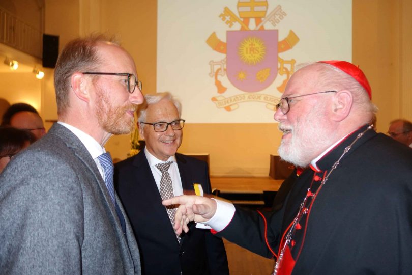 Foto: Hötzelsperger – Reinhard Kardinal Marx jüngst mit dem Priener Pfarrer Klaus Hofstetter (li.) bei der Verleihung eines Päpstlichen Ordens an Kirchenmusiker Rainer Schütz (Mi.)