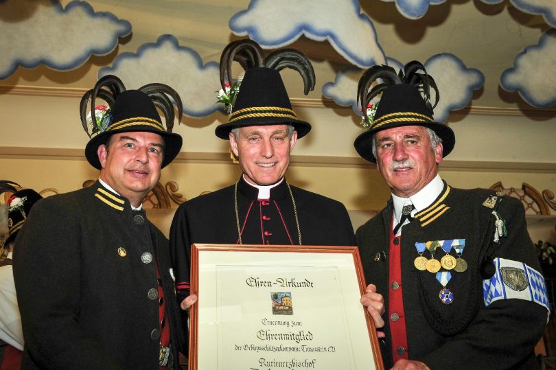 In feierlicher Weise wurde -wie berichtet- Kurienerzbischof Dr. Georg Gänswein, dem Privatsekretär von Papst emer. Benedikt XVI von der Gebirgsschützenkompanie Traunstein die Ehrenmitgliedschaft zuerkannt. Von der Verleihung und von den Feierlichkeiten noch diese Bilder-Impressionen.