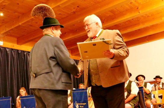 Lieber Peter, die Weitergabe von Heimat, Tracht und Brauchtum an die nachfolgenden Generationen ist dir zum Lebensinhalt geworden. 1962 bist du deinem Heimatverein Weikertstoana Weißbach beigetreten und bist 1967 zum 1. Vorplattler gewählt worden. Das Amt des 1. Vorsitzenden hast du ab 1974, 24 Jahre lang, mit Umsicht und Weitblick ausgeübt. Zeitüberschneidend hast du als Hüttenwart (bis 1998) euer Vereinsheim betreut. Du wars Festleiter beim 50. und 70. Gründungsfest und hast die Proben der Kinder und Jugend lange Jahre als Ziachspieler begleitet. Am Ende der Amtszeit als Vereinsvorsitzender bist du zum Ehrenmitglied ernannt worden. Im Gauverband I wurdest du von 1995 – 1998 als 2. Gauvorstand an das Amt des 1. Gauvorstandes herangeführt. Erst im Vergangenem Jahr endete deine 23-jährige Amtszeit als Gauvorstand, in der du Maßstäbe gesetzt hast. Du bist mit dem Gauverband I immer wieder neue Wege gegangen und warst mir dabei immer ein Vorbild. Du warst und bist immer tolerant und nachsichtig mit den Menschen jedoch streng, konsequent und beharrlich wenn es um die Aufrechterhaltung von Heimat, Tracht und Brauchtum ging. Im Bayerischen Trachtenverband warst du zunächst ab 2001 Beiratsmitglied im Förderverein und ab 2007 bis zum vergangenem Jahr dessen stv. Beirats-vorsitzender. Im Jahr der Verschmelzung (2002) bist du dem Verband 3 Jahre als Revisor zur Seite gestanden bevor du von 2005 bis 2011 die Aufgaben als stv. Landeskassier übernommen hast. Und von 2011 – 2021 warst du (10 Jahre lang), nicht nur für den Max, ein sehr wichtiger stellvertretender Landesvorsitzender. Aus diesem Grund haben wir dich bei der Landesversammlung 2021, in Regensburg, zu unserem Ehrenmitglied im Bayerischen Trachtenverband ernannt.