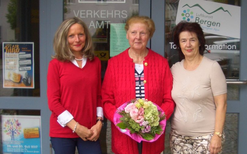 Foto zeigt von links nach rechts Renate Pertl von der Tourist-Information Bergen, Wilma Esser und die Vermieterin Rosemarie Schillmeier.