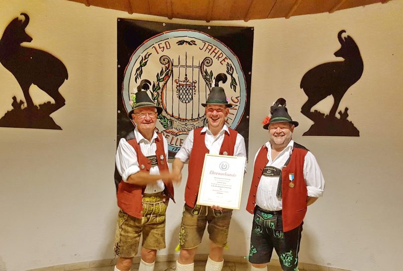 Bericht und Foto: Sybilla Wunderlich – von links Vorstand Richard Prasser, Christian Prasser, Kapellmeister Walter Reisenauer
